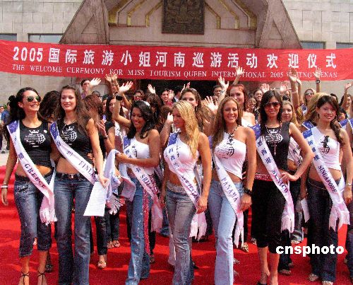 中新網(wǎng)鄭州六月十二日電(記者胡珂)由七十五個國家和地區(qū)七十五名旅游形象大使及二十多個境內(nèi)外媒體組成的“二OO五國際旅游小姐中國之旅”河南巡游團(tuán)暢游中原之行十一日在鄭州正式“起程”。