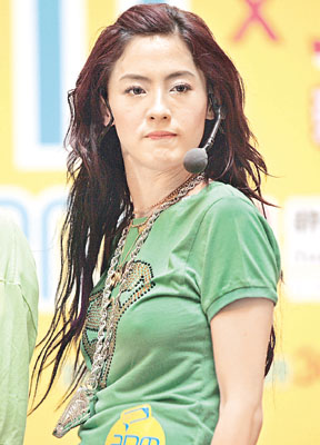 昨天柏芝穿上綠色T恤襯低腰褲作hip hop打扮,跳舞時(shí)卻配上“特別效果”,胸前出現(xiàn)“凸點(diǎn)”現(xiàn)象之余,黑色內(nèi)褲邊也隨著拍子頻頻曝光。柏芝更是語(yǔ)出驚人,在與fans跳舞時(shí),她竟向fans說(shuō):“你用下面(下半身)頂住記者就得。”十分不文。當(dāng)她唱《新聞女王》時(shí),有人假扮狗仔隊(duì)偷拍她,柏芝就用屁股把他頂開(kāi)。