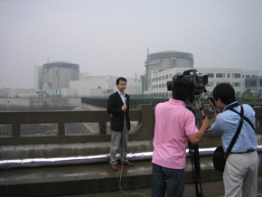經(jīng)過2個小時的車程,旅游大巴開進(jìn)了秦山核電基地。當(dāng)天適逢秦山地區(qū)進(jìn)入梅雨季節(jié),天公不作美,時雨時陰,讓人琢磨不透,但這絲毫未影響記者的采訪熱情;胤矫嬖谟浾叩絹碇耙盐从昃I繆,準(zhǔn)備了充足的雨具。一些攝影攝像記者抑制不住職業(yè)的本性,迫不及待取出隨身攜帶的攝影攝像器材,抓拍感興趣的鏡頭。