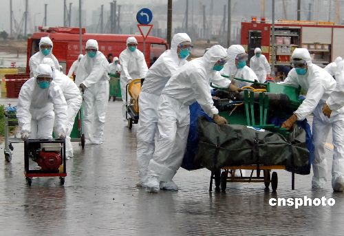 澳門警方接報(bào),正在舉行體育比賽的“澳門蛋”出現(xiàn)三個(gè)持白色疑為生化爆炸物的匪徒,劫持群眾并施暴。按照反恐預(yù)案,一支由司法、治安、消防警察,海關(guān)、衛(wèi)生、防護(hù)專業(yè)人員組成的十幾支應(yīng)急隊(duì)伍的車輛,拉響警笛呼嘯著趕到事發(fā)地。