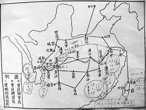 該地圖是那志良在協(xié)助臺灣“教育部部長”杭立武編寫《中華文物三十年》時(shí)畫出的,王慶臺在整理資料時(shí)參考了該圖并進(jìn)行了一些補(bǔ)充和完善。《船運(yùn)合約書》手抄副本