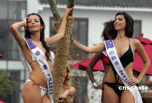 組圖:國際旅游小姐大賽佳麗在水鄉(xiāng)周莊拍攝泳裝照