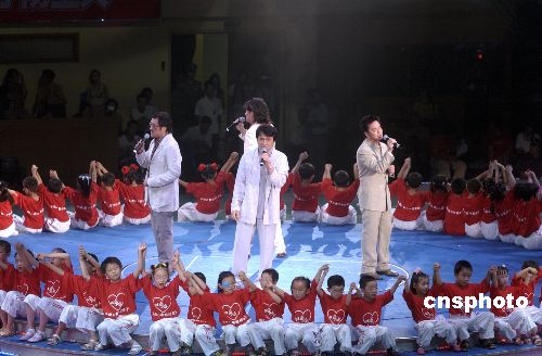中新網(wǎng)6月24日電 據(jù)香港《大公報》報道,“把愛心奉獻(xiàn)給孩子”大型綜藝晚會前晚在北京首都體育館舉行,參演藝人包括有成龍及其子房祖名、唐季禮、曾志偉、許志安、蘇永康、周華健及李宗盛等,其中祖名更效法父親一向的善心,當(dāng)場大解善囊捐出30萬元。