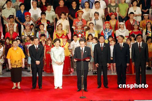 夜晚的北京沉浸在節(jié)日的喜慶氣氛里。20時15分,在全場來賓的熱切期盼中,李長春宣布北京2008年奧運會主題口號:“同一個世界同一個夢想”。