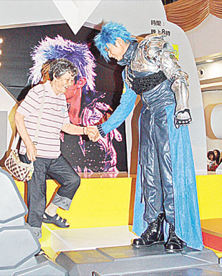 前晚活動現(xiàn)場布置成紅館一樣,以機械人“高達之手”作舞臺,現(xiàn)場又擺放基仔曾穿過的“戰(zhàn)衣”,基仔以“藍戰(zhàn)士”造型出現(xiàn),吸引超過二千人圍觀,人群更把商場的七層樓重重包圍,令現(xiàn)場密不透風。基仔于活動上與歌迷大玩游戲,又獻唱一曲《傷追人》。至“影相會”正式開始,歌迷紛紛到臺上與基仔合照,他對一位七十三歲的翁姓婆婆特別照顧,令歌迷吃醋尖叫;杏旨磮鲂佳莩獣﨏D和VCD合共已賣出“雙白金”成績,氣勢驚人。