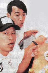 當(dāng)時(shí),記者上前拍照,婉婉立即低頭,小春見狀即喝罵:“不要拍呀!”繼而便拿起前面的粿條潑向記者,記者離開該店后,婉婉立即與小春耳語一番,似是勸他不要?jiǎng)优,半小時(shí)后,眾人分別離開。