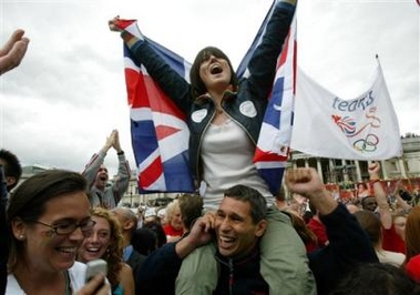 中新網(wǎng)7月6日電 在7月6日晚間進(jìn)行的第30屆奧運(yùn)會(huì)的主辦城市的選舉中,來自英國的倫敦力壓法國首都巴黎,成功獲得該城市歷史上的第三次奧運(yùn)會(huì)主辦權(quán)。賽后,倫敦居民喜出望外,紛紛走上街頭慶祝勝利。