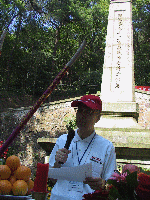 年屆七十的他怎會(huì)忘記六十年前的戰(zhàn)火硝煙,怎會(huì)忘記日本帝國主義的殘酷暴行,情不能已處,他的聲音幾度哽咽。但是,今天他以團(tuán)長(zhǎng)之職帶著參加“湖湘文化之旅”的兩岸學(xué)子前來祭奠躺在這里的民族英雄,他希望青年一代永遠(yuǎn)銘記歷史。