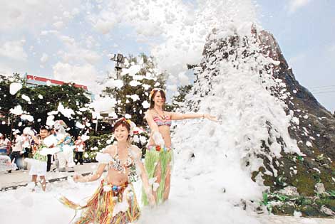 為迎戰(zhàn)將于九月開幕的香港迪士尼樂園,今年“夏水禮”瞄準(zhǔn)港人喜歡陽光與海灘的心態(tài),為活動滲入南太平洋島國元素,旅客在戲水時猶如置身充滿色彩的熱帶小島。海洋公園行政總裁苗樂文稱,該園耗用了三個月時間、斥資一千萬元籌辦夏水禮,該活動共有七個項(xiàng)目,包括建造全港首個主題公園內(nèi)的沙灘——“南島沙樂園”,場內(nèi)廿四個小食亭更準(zhǔn)備數(shù)十款夏威夷美食飲品。他透露,該園租了十二個貨柜,從內(nèi)地運(yùn)來幼沙,并用了數(shù)千加侖液體去制造泡沫。