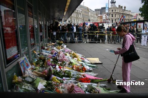 圖:倫敦市民向爆炸事件罹難者獻(xiàn)花