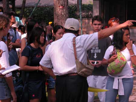 外國游客正認(rèn)真聽導(dǎo)游講解