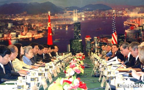 中國國務(wù)院副總理吳儀與美國商務(wù)部長古鐵雷斯進(jìn)行會(huì)談。作者:廖文靜
