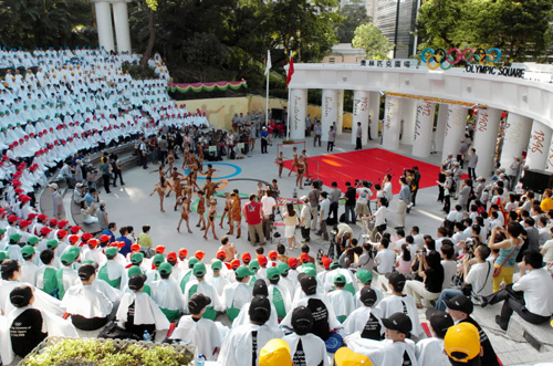 11日,香港舉行奧林匹克廣場(chǎng)揭幕禮。位于香港公園的廣場(chǎng)命名為奧林匹克廣場(chǎng),是香港推廣奧運(yùn)精神的地標(biāo),將來(lái)會(huì)有很多重要體育活動(dòng)在此舉行。國(guó)際奧委會(huì)主席羅格在港協(xié)暨奧委會(huì)會(huì)長(zhǎng)霍震霆的陪同下,為廣場(chǎng)啟用揭幕。(新華社圖)