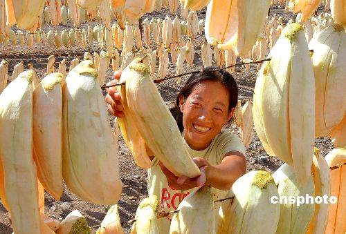 圖:吐魯番農民晾曬哈密瓜干