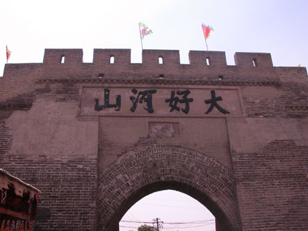 大境門門墻高12米,底長13米,寬9米,有木質(zhì)鐵皮大門兩扇。門楣上“大好河山”四個大字由當時的察哈爾都統(tǒng)高維岳書寫。