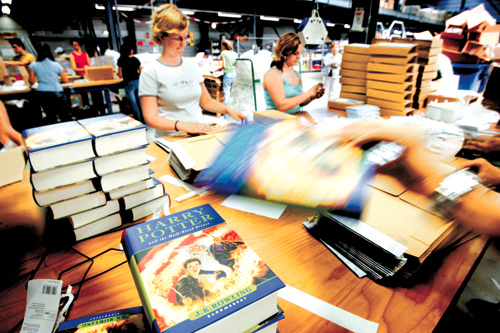 隨著第六集公開發(fā)售的時(shí)刻臨近,哈利波特狂熱周五席卷美國。預(yù)料約四百萬人午夜將會(huì)聚集在全國各地五千多家計(jì)劃舉行新書發(fā)售派對(duì)的書店。網(wǎng)上書店亞馬遜銷售部經(jīng)理勞拉.波爾科說:“我們對(duì)此早有準(zhǔn)備,因?yàn)橐郧耙呀?jīng)經(jīng)歷過!敝林芩臑橹,亞馬遜在美國國內(nèi)已經(jīng)接到近九十萬個(gè)定購。這個(gè)數(shù)字打破○三年六月《哈利波特》第五集發(fā)售時(shí)的七十八萬九千個(gè)定購的紀(jì)錄。