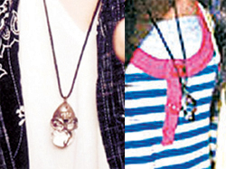 讀者昨爆料,直指“仔仔和大S戴同款情侶項鏈”,記者查證結果,上周五大S在機場準備赴上海時,以及前天她陪妹妹徐熙娣(小S)試婚紗,所戴的一條黑色皮質的鏈帶、半透明狀的橢圓形墜子,可能是水晶或瑪瑙之類材質的項鏈,和仔仔的宣傳照,戴的是同款項鏈,仔仔的發(fā)型和上周五亮相時一樣,應是近期拍的。
