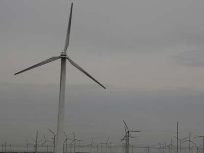 在從烏魯木齊去吐魯番的路上,一大片風(fēng)力發(fā)電機挑起了不少游人的興趣。