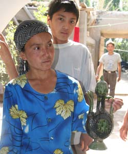女主人向好奇的記者們展示阿不拉壺用法