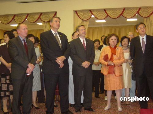 美國退伍軍人事務(wù)部長尼科爾森(Nicholson),美國國會眾議院美中工作小組共同主席柯克(Kirk),國會眾議員伊斯突克(Istook)、美國國務(wù)院負(fù)責(zé)東亞事務(wù)的高級顧問祁俊文(James Keith),美國政府各部門代表,各國駐美使節(jié)代表,華僑華人代表及美國友好人士共約400多人出席了當(dāng)晚的招待會。