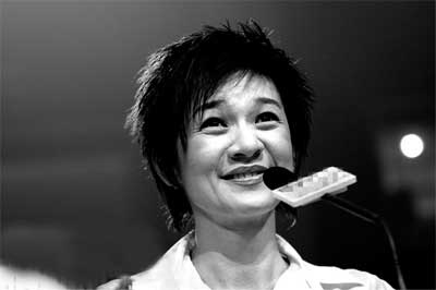 7月22日晚總決選第二場,柯以敏又坐在了評判席上。白色襯衣加上一頭短發(fā)比較低調(diào)。盡管如此,柯以敏再度出語驚人,她公開批評有些“超女”沒有實力還出唱片,并高喊:“把那些不會唱歌還出唱片的人干掉!”難道是指去年“超女”季軍張含韻嗎?不過在隨后的重播中,電視臺將這一段內(nèi)容剪掉了。