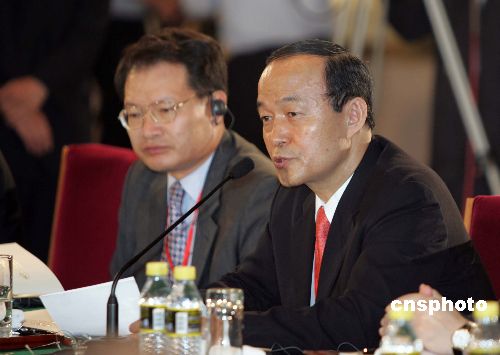 韓國代表團團長、韓國外交通商部次官補宋旻淳七月二十六日在北京釣魚臺國賓館芳菲苑舉行的朝核問題六方會談上發(fā)表致辭。作者:毛建軍