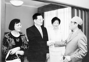 當(dāng)天下午5時(shí)左右,楊先生又打來電話,告知連戰(zhàn)辦公室主任丁遠(yuǎn)超先生和他自己將代表連主席到府上回訪。因?yàn)楫?dāng)晚連主席一行到老舍茶館看演出,丁楊二位先生直到夜里12時(shí)30分才來到我家,他們不僅帶來了連主席的問候,還帶來了連主席贈(zèng)送的禮品。