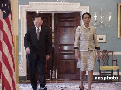 中新網(wǎng)華盛頓7月27日電 應(yīng)邀訪美的中國國務(wù)委員唐家璇美東時間二十七日在華盛頓會見了美國國務(wù)卿賴斯。雙方就朝鮮半島核問題交換了意見,都希望正在北京舉行的第四輪六方會談取得實質(zhì)性進展。