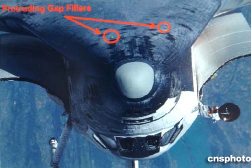 發(fā)現(xiàn)號航天飛機前腹部多余的縫隙填充物位置圖