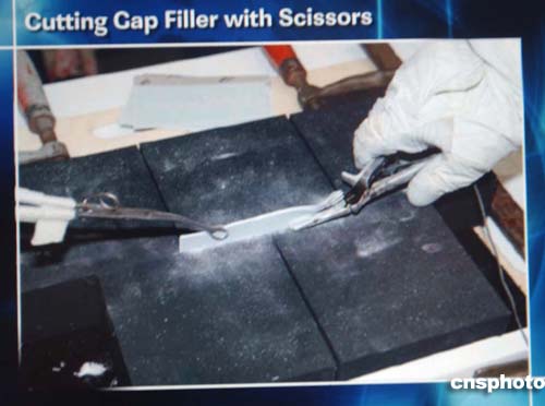 發(fā)現(xiàn)號宇航員斯蒂芬·羅賓遜出任“外科醫(yī)生”,將航天飛機多余的縫隙填充物剪下,或者把它都夾出來