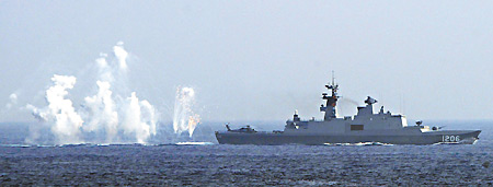 據(jù)報道,昨天的?章(lián)合操演假想解放軍以突擊、封鎖及?展舴绞,意圖封鎖臺左營與高雄港,阻斷臺對外交通。臺海軍艦只緊急出港,港內(nèi)部隊實施要地防空。此時,模擬解放軍戰(zhàn)機臨空,臺軍各艦及港內(nèi)防空飛彈、火炮,皆啟動接戰(zhàn)。