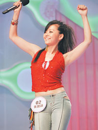 張靚穎目前是超女的熱門人物,她的外貌也最受推崇,和葉一茜一樣,兩人都是長發(fā)披肩的標準美女,笑容也很甜美。