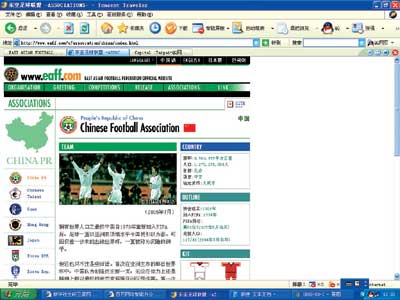 隨著中國男足、女足國家隊(duì)征戰(zhàn)東亞四國足球錦標(biāo)賽,關(guān)于東亞足聯(lián)這樣一個(gè)機(jī)構(gòu)也開始進(jìn)入人們關(guān)注的視線。但讀者劉先生昨天瀏覽東亞足聯(lián)官方網(wǎng)站()的時(shí)候,卻發(fā)現(xiàn):在介紹中國足協(xié)的頁面上,中國地圖上居然沒有臺(tái)灣省。該讀者稱,中國作為一個(gè)獨(dú)立的主權(quán)國家,在介紹中國足協(xié)的網(wǎng)頁上,中國地圖上居然漏掉寶島臺(tái)灣!這一點(diǎn)是讓中國人無法接受的。