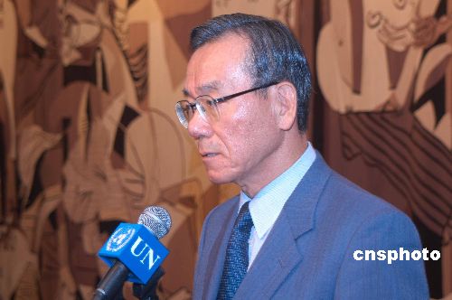 圖:日本駐聯(lián)合國(guó)代表大島賢三紐約接受記者采訪