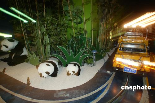 八月九日,臺北木柵劍湖山兒童玩國正在進行“我愛貓熊寓教展”,在其游樂項目中,參觀者可以乘坐可愛的熊貓吉普車,進入熊貓生態(tài)的園地。作者:盛佳鵬