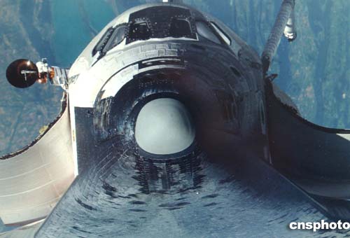 此外,“發(fā)現(xiàn)”號還第一次攜帶了一根約15米長的遙控掃描系統(tǒng)來到太空。它能連接在航天飛機原有的機械臂上,使其能夠伸到航天飛機的腹部,讓附著在頂端的相機為航天飛機拍照。