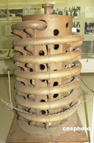 模仿當(dāng)年庫房樣式建起的“毒氣資料館”內(nèi),陳列著大量當(dāng)年留存的歷史證物,如造型復(fù)雜的化武制劑冷卻過濾裝置、陶鉛合制的各款化武容器、作業(yè)員工用的防毒護(hù)具、化武制劑儲存罐“紅桶”等。