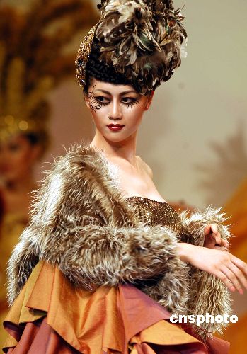 2006中國發(fā)型化妝潮流趨勢發(fā)布會8月14日在北京舉行,模特展示的化妝造型以“歡顔、影舞、暗香、幻想”為主題,展現(xiàn)女性的不同氣質。一年一度的潮流趨勢發(fā)布由中國發(fā)型化妝藝術研創(chuàng)中心創(chuàng)作演出。作者:張宇