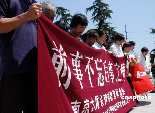 中新社南京八月十五日電(記者王國(guó)安)日本“銘心會(huì)”等民間友好團(tuán)體和人士,今天在侵華日軍南京大屠殺遇難同胞紀(jì)念館舉行和平集會(huì),悼念三十萬(wàn)中國(guó)遇難者,祈禱世界和平。