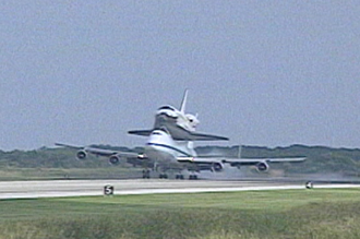 另據(jù)報道,一架改進型波音747專用運輸機19日背著“發(fā)現(xiàn)”號航天飛機從美國加利福尼亞州愛德華茲空軍基地起飛,原計劃20日回到肯尼迪航天中心。但因天氣原因,“發(fā)現(xiàn)”號不得不在途中暫時歇息,推遲一天回家。