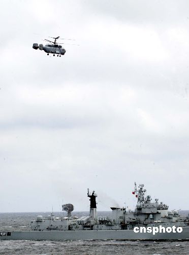 “飛赴某海區(qū)執(zhí)行艦機(jī)協(xié)同任務(wù)!”“明白!”劉進(jìn)坤從容應(yīng)答。戰(zhàn)機(jī)在甲板上空懸停、轉(zhuǎn)向。隨后前傾,大速度前出,飛離112艦。高速下沉的氣流在海上吹開了一個很大的旋渦,隨著直升機(jī)前進(jìn)而緩緩移動。這時,從俄羅斯海軍“沙波什尼科夫海軍元帥”號反潛艦上起飛的卡-27型直升機(jī)也離開了載艦并很快進(jìn)入航線,朝直-九跟進(jìn)。不一會兒,兩架直升機(jī)在預(yù)定海區(qū)組成編隊,一前一后、一高一低,像兩只上下翻飛的蝴蝶,讓人賞心悅目。
