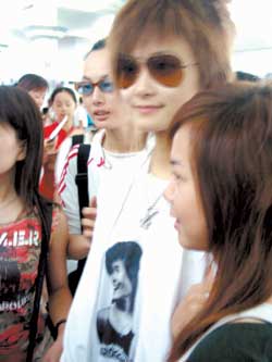 因為在長沙和李宇春同住一個酒店,記者看見前天晚上11點多還有人在李宇春住的“金牛座”門口守著,他們打算徹夜守在這里。昨天早上6點15分左右,記者退房途經(jīng)李宇春的“金牛座”,門口卻看不到一個人影,本以為“玉米”們都扛不住了,誰知當記者7點10分到達長沙機場時,看到十幾個穿著黃色衣服的“玉米”手捧鮮花和禮物已經(jīng)等在機場大廳了。