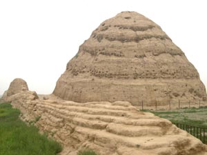 西夏王陵位于銀川市以西約25公里的賀蘭山東麓,方圓40平方公里,坐落著9座帝王陵和70多座陪葬墓。陵邑位于陵區(qū)北部,總面積約6萬平方米,四周筑有夯土城墻,城內(nèi)廣場、道路、院落、水井和房屋等遺跡都清晰可見,布局十分規(guī)范整齊。城內(nèi)分前、中、后三個部分,中部和后部的正中,各有一座規(guī)模宏大的殿堂,其它建筑多集中在城的前部和中部,并組成一座座封閉式庭院。