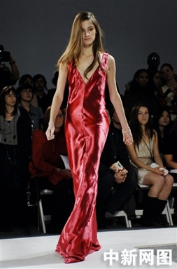 2006年2月3日,為期八天的二00六紐約時裝周在曼哈頓開幕,這個世界時尚界盛事將傳遞本年度秋季時裝的潮流。圖為模特在展示日本設(shè)計師Akiko Ogawa的作品。這是Akiko Ogawa的作品第一次在紐約展示,她的靈感來自巴黎上個世紀(jì)20年代上流社會的照片。