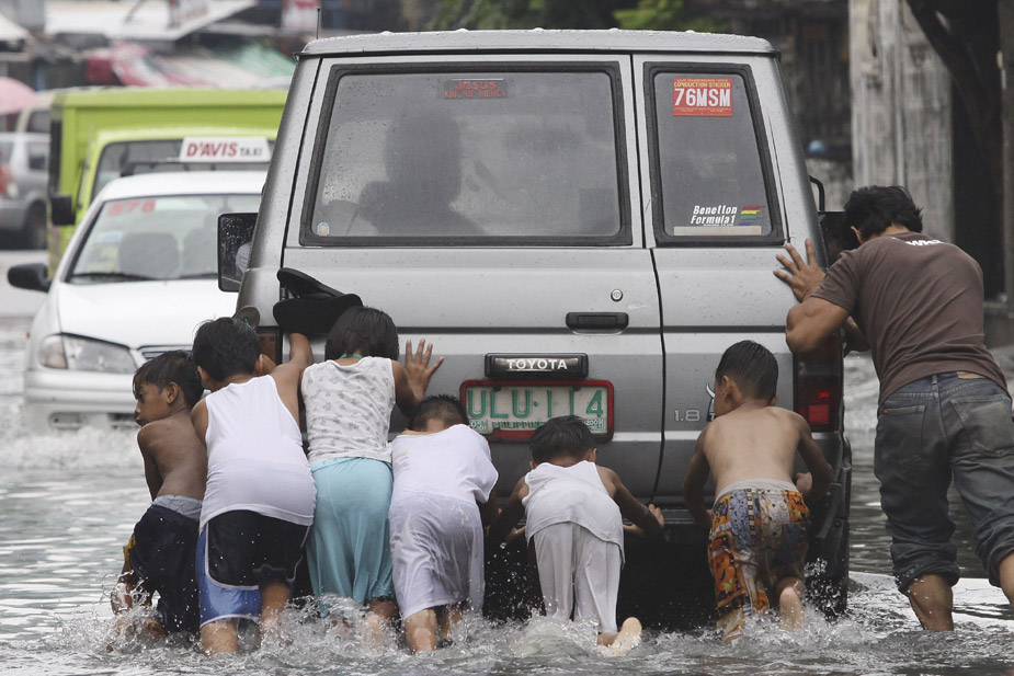 7月16日,一場熱帶風暴當天襲擊了菲律賓首都馬尼拉。這場風暴不但帶來大量降水,也使城市大量積水,出行困難。