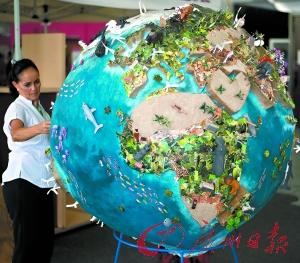 11月30日,一名與會(huì)代表在觀察坎昆氣候大會(huì)會(huì)議中心的一個(gè)地球模型。