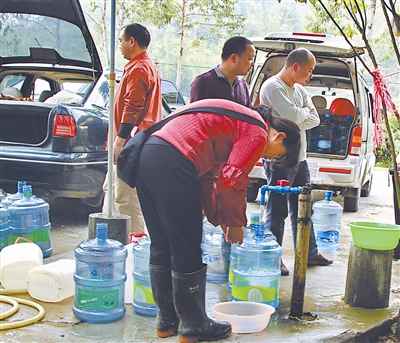 1月31日中午,在廣州市帽峰山腳下的一個(gè)賣水點(diǎn),一個(gè)上午賣掉了上千桶水。