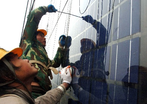 太陽能方面,2009年中國光伏電池年產(chǎn)量約占全球產(chǎn)量的40%,連續(xù)三年居世界第一,為世界太陽能光伏發(fā)電作出了重要貢獻(xiàn),通過國家能源局公開招標(biāo)的甘肅敦煌10兆瓦光伏發(fā)電項目也正在建設(shè)之中。