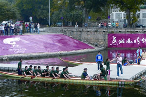 北京2008奧運(yùn)會(huì)火炬?zhèn)鬟f澳門站籌委會(huì)繼周六在市區(qū)實(shí)地測試后,北京奧組委、澳門奧委會(huì)、治安警察局、海關(guān)及澳門龍舟總會(huì)27日在西灣湖演練火炬龍舟傳送,進(jìn)一步加強(qiáng)各范疇溝通、協(xié)調(diào)能力。北京奧組委代表張惠清,蕭威利以及治安警察局副局長馬耀權(quán)27日到場觀察測試情況。