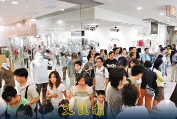 時代廣場推廣及廣告部經(jīng)理馬惟樂稱,一連3日的小黃金周,令該商場人山人海,人流明顯增加,相信生意額較去年同期上升8%至10%;人流則上升8%至10%。他續(xù)稱,北京奧運熱潮影響,也帶動售賣運動服飾的商鋪大旺。